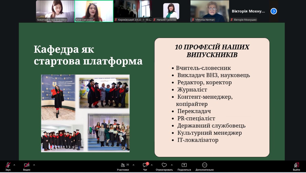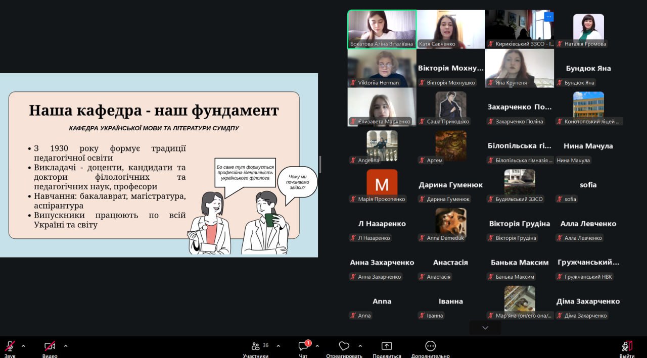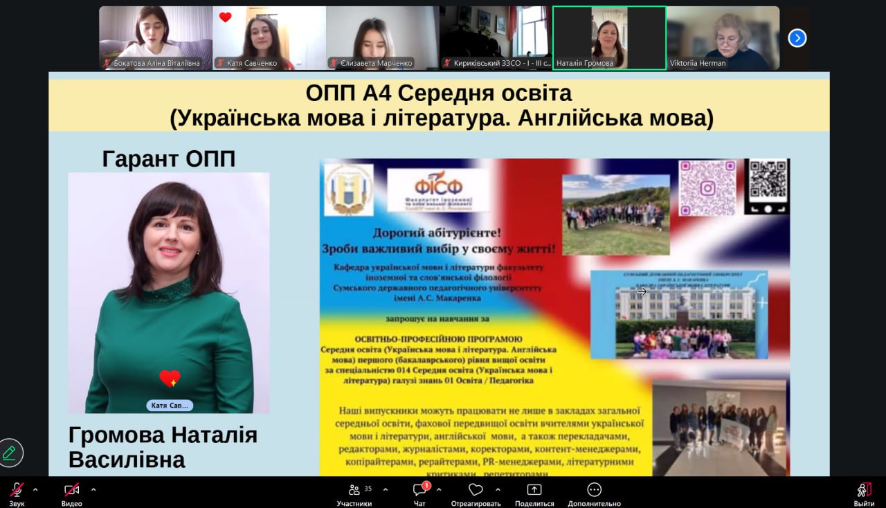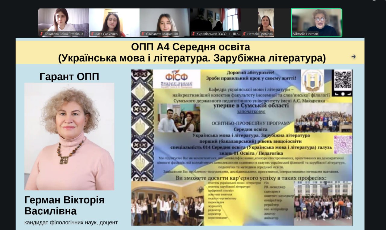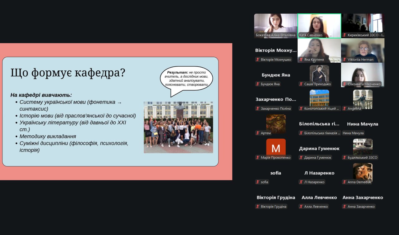 Профорієнтаційна частина була присвячена можливостям навчання на кафедрі української мови та літератури: освітнім програмам, науковій діяльності студентів, творчим проєктам і професійним перспективам випускників.