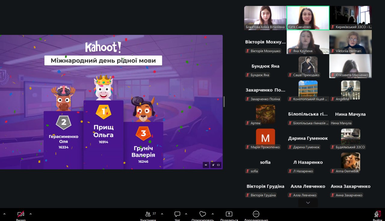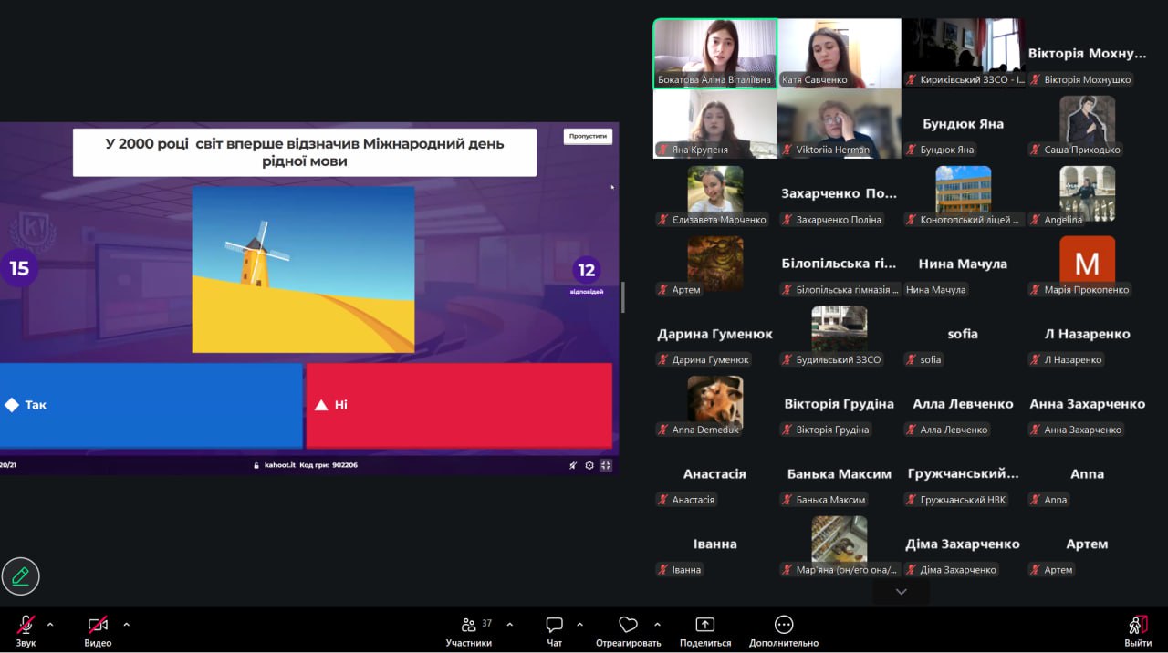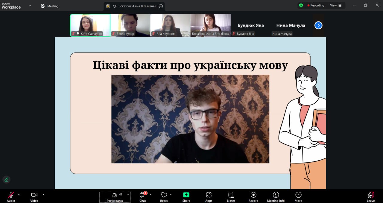 Після наукових виступів учасники переглянули відео з цікавими фактами про українську мову та взяли участь в інтерактивному тестуванні Kahoot, що дало змогу перевірити знання й водночас створило атмосферу активної взаємодії.