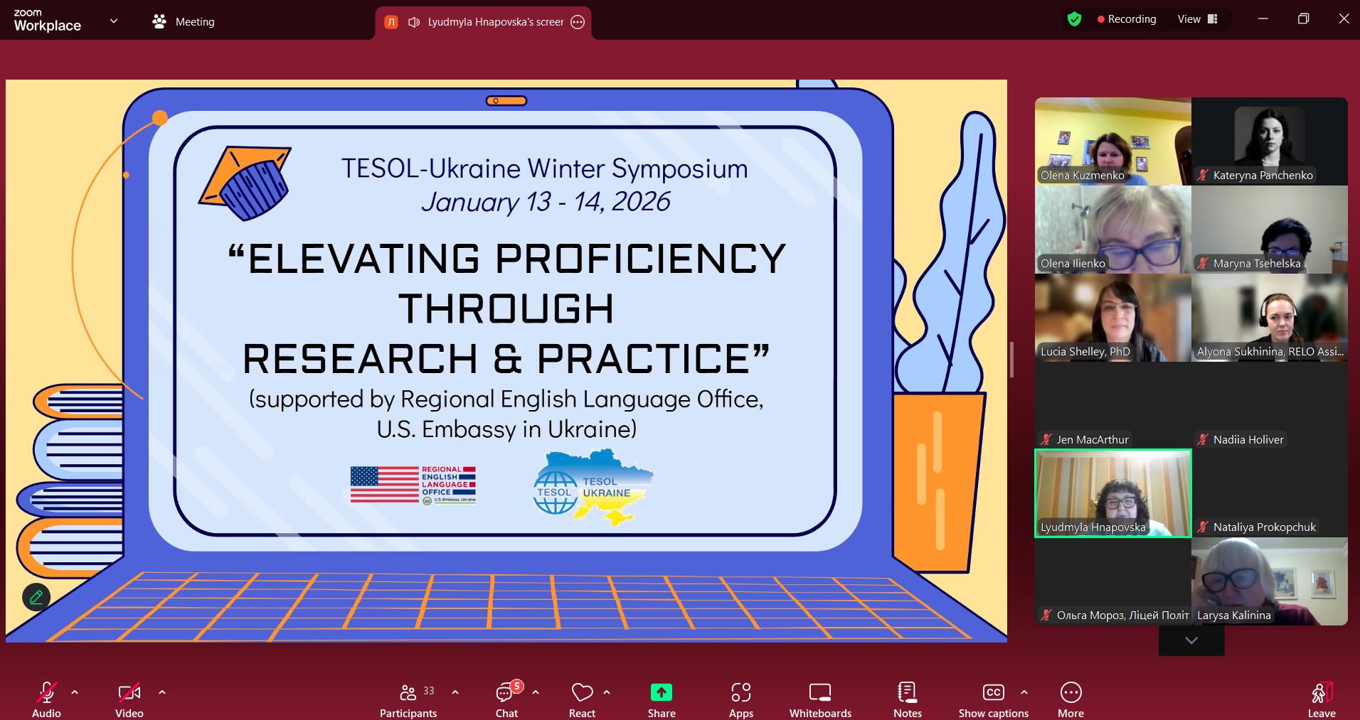 13-14 січня 2026 року відбувся зимовий симпозіум «Elevating Proficiency Through Research & Practice», організований TESOL-Ukraine за участі доктора Люсії Шеллі (США) та за підтримки Регіонального відділення з питань викладання англійської мови Посольство США в Україні.
